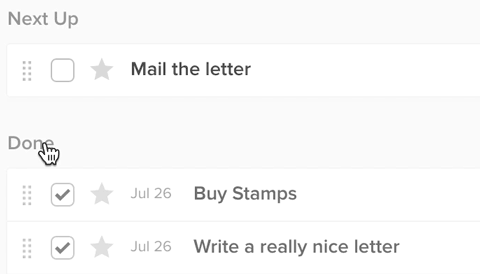 Once you complete a project or action, it moves to the Done group within your list. If you’d like to clear up your view, you can: