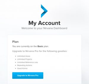 - At the top of the page, under the heading Plan, click Upgrade to Nirvana Pro.